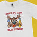 The ultimate festive statement piece for anyone ready to sleigh (pun intended) this holiday season! This cheeky graphic tee features a tipsy reindeer and a punny slogan that's sure to spread some festive cheer, perfect for lounging by the fireplace or hitting up those wild office holiday parties.