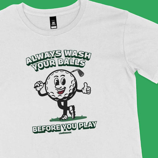 View full detailsThe funniest golf tee you'll ever wear! Our Always wash your balls t-shirt is a guaranteed hole-in-one when it comes to making people laugh on the ...
